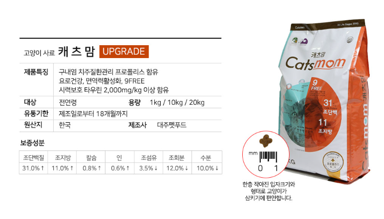 캐츠맘전연령 20Kg : 국산사료 (제조사 대주펫푸드) 유통기한 18개월 12개월