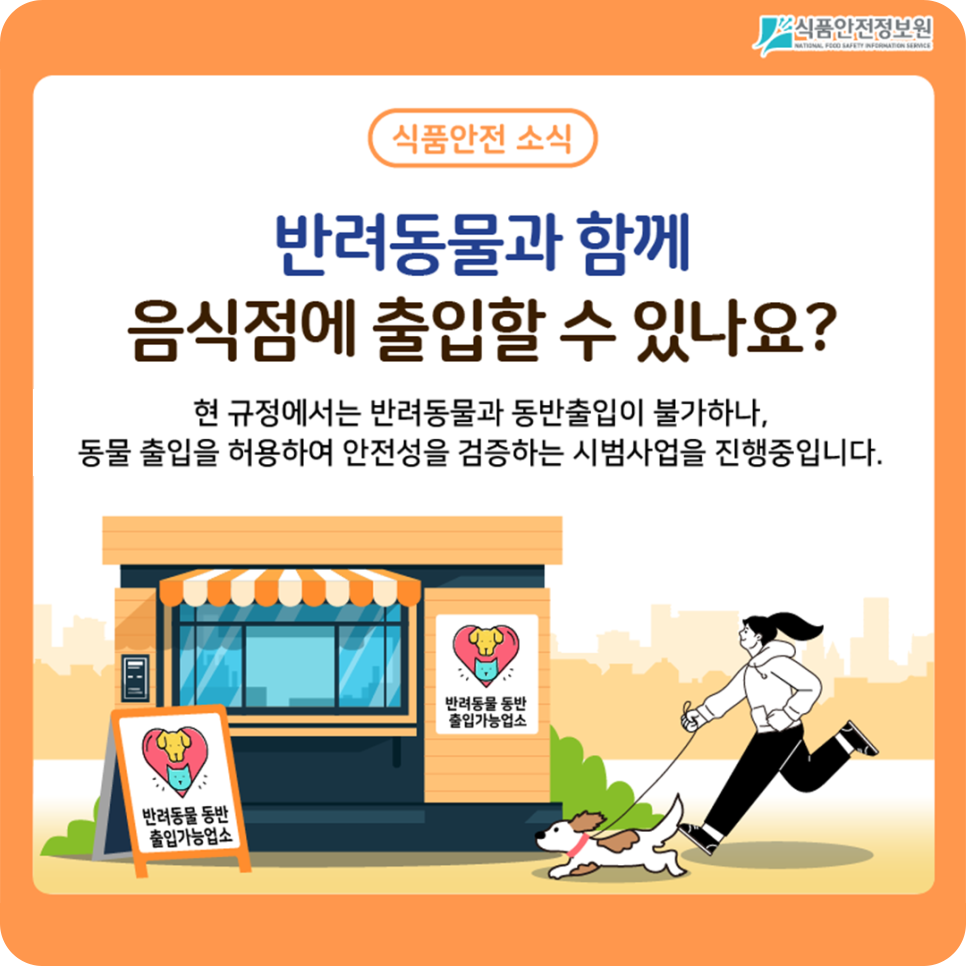 이에 식품의약품안전처는 음식점에 반려동물의 출입을 허용한 규제샌드박스 시범사업을 진행하고 있습니다.