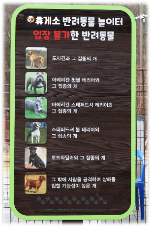 반려동물의 배변 처리는 보호자께서 직접 해주시고, 맹견이나 사고 유발 가능성이 있는 반려동물은 출입을 삼가해 주시기 바랍니다.