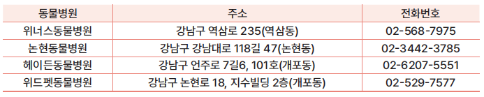 <2024년 강남구 지정 우리동네 동물병원>