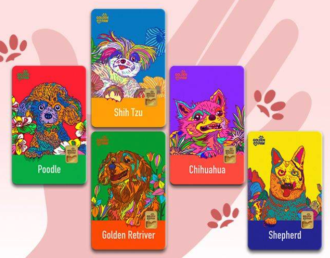 Golden Paw 카드형 골드 5종은 각각 중량 1g으로 출시되며, 국내 유일 KRX 금시장 품질인증기관인 한국조폐공사가 순도 99.99%를 직접 보증합니다. 카드형 패키지는 골든리트리버, 푸들, 시츄, 셰퍼드, 치와와 디자인으로 각각 구분해 구성했습니다. 카드형 골드는 보관과 휴대가 용이해 최근 투자용·기념용·선물용 수요가 동시에 증가하는 추세라는 설명도 덧붙였습니다.